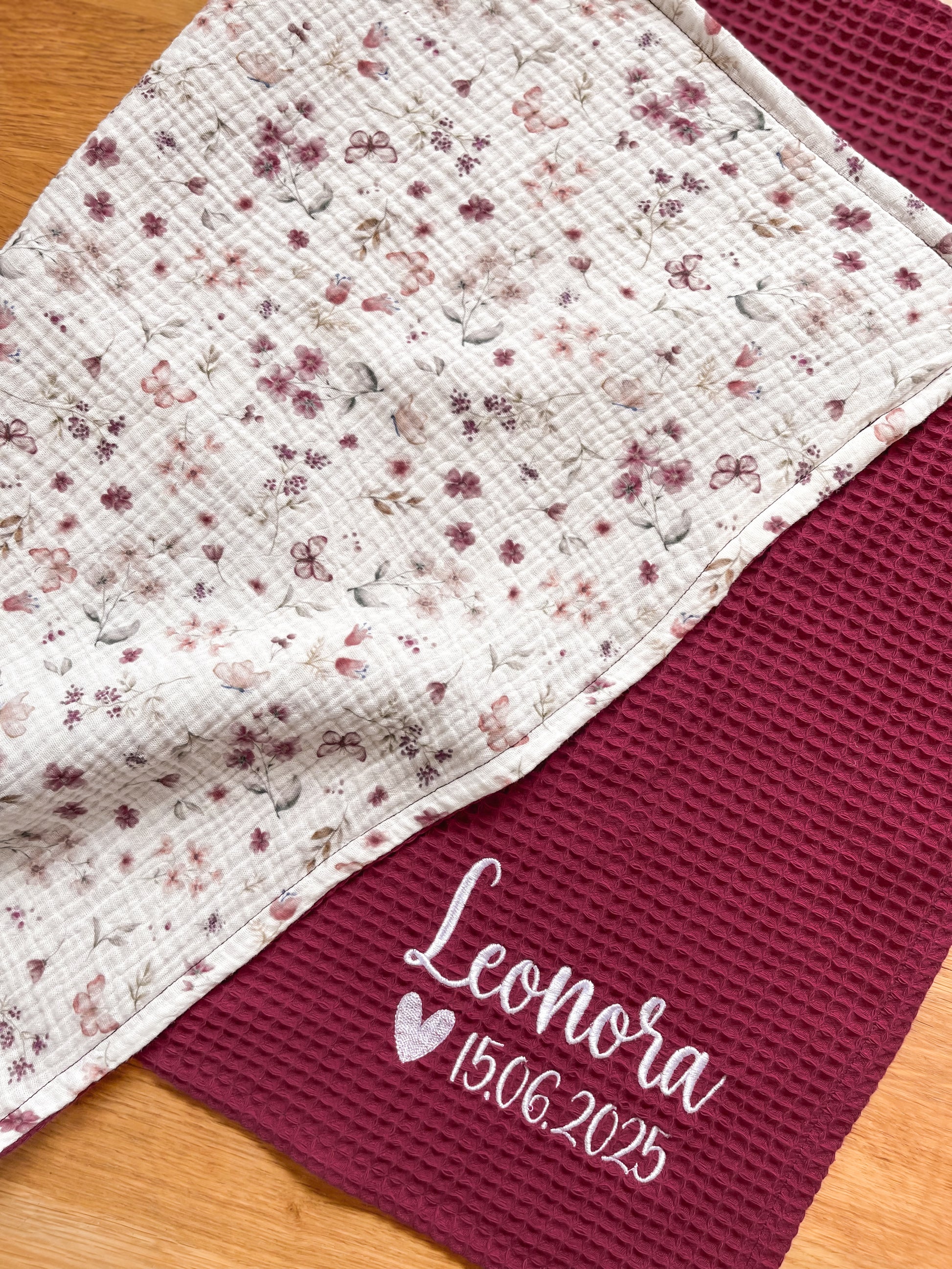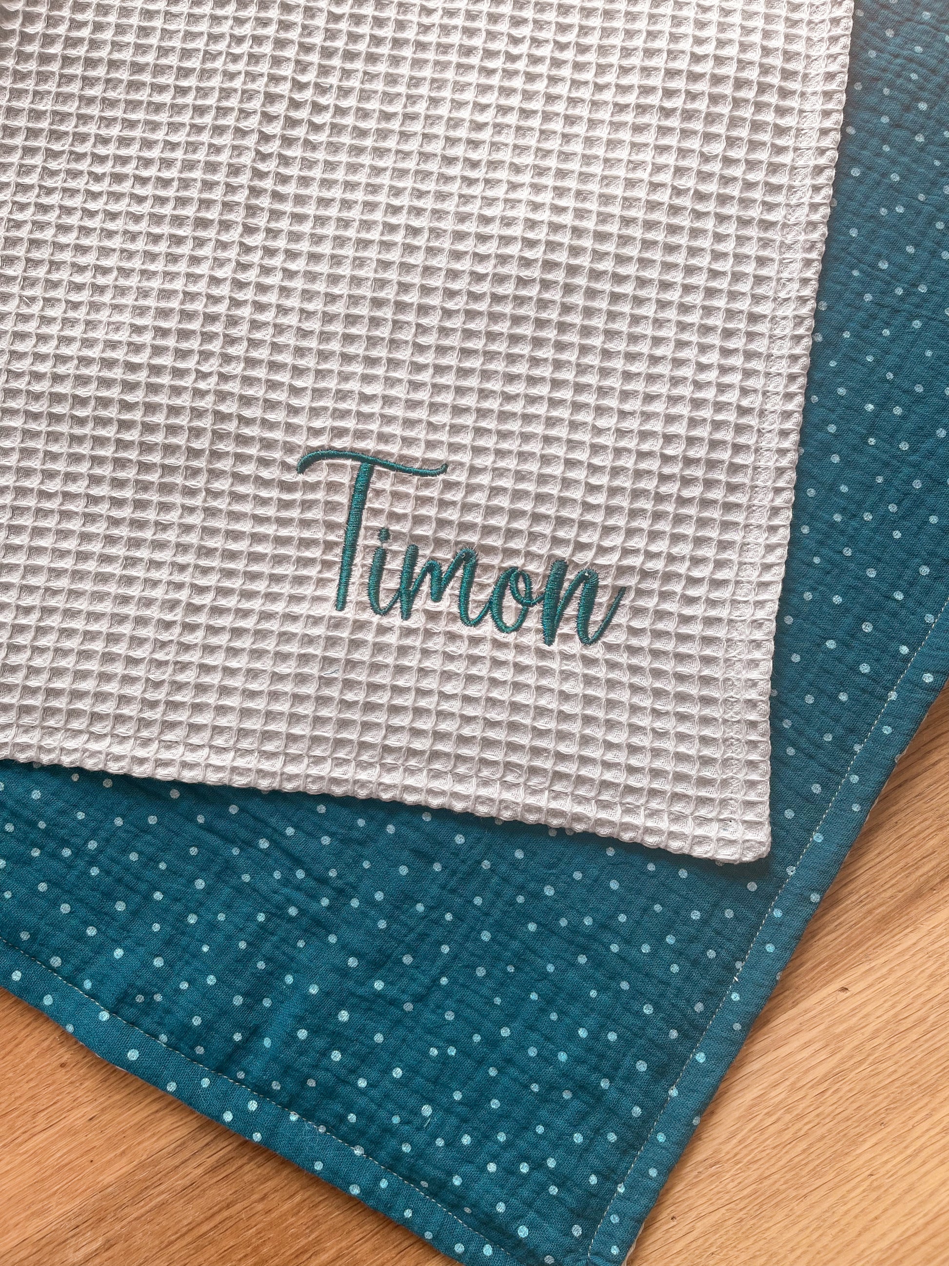 Wir personalisieren die Decke sehr gerne mit dem Namen oder den Geburtsdaten.