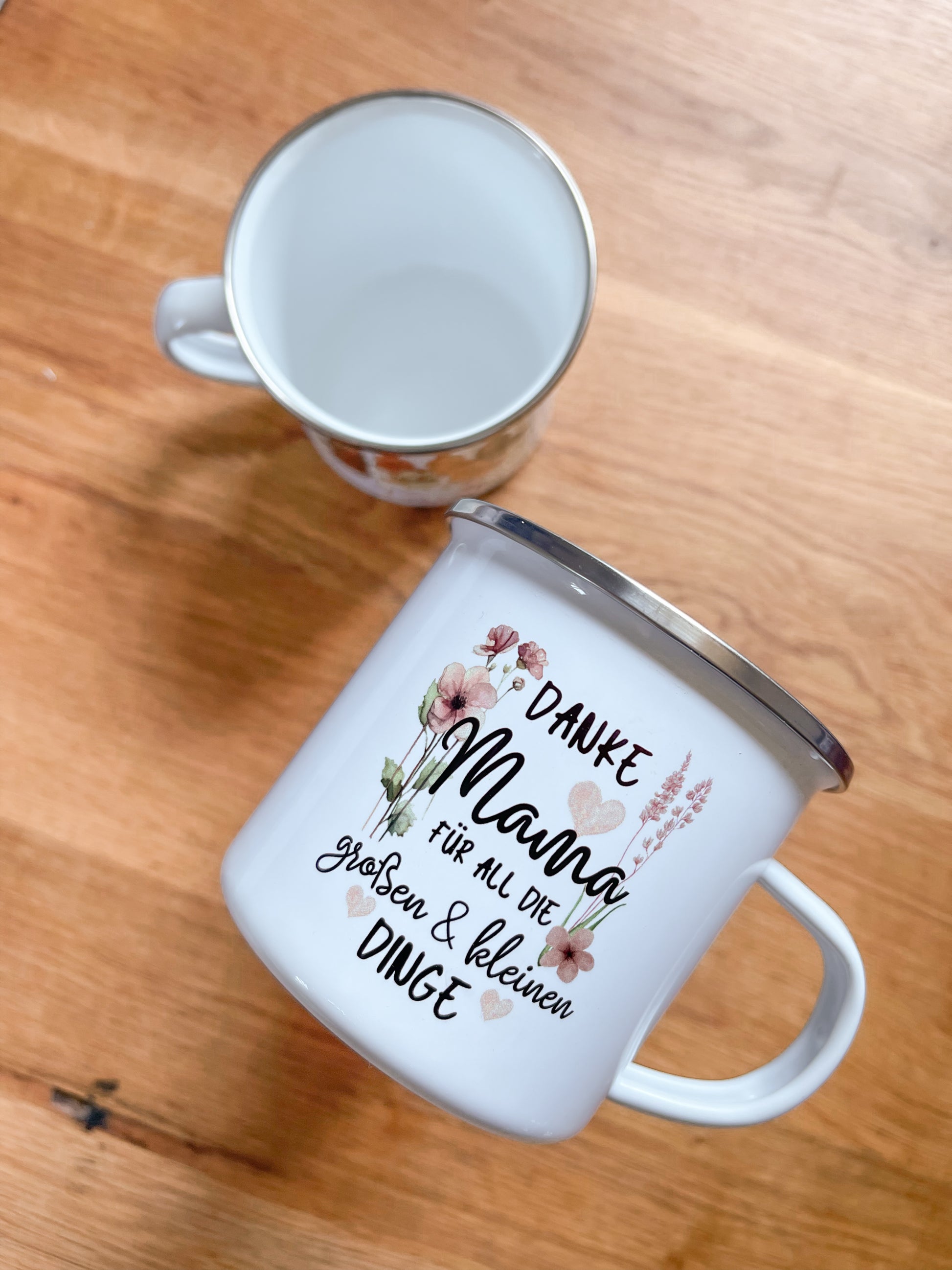 Personalisierte Emaille-Tasse mit bezauberndem Designs. Schenke deinen Liebsten eine einzigartige Emaille Tasse mit einer netten Botschaft und dem Namen personalisiert - eine schöne Idee um den Beschenkten bei jedem Kaffe, Tee, Kakao ein Lächeln ins Gesicht zu zaubern.