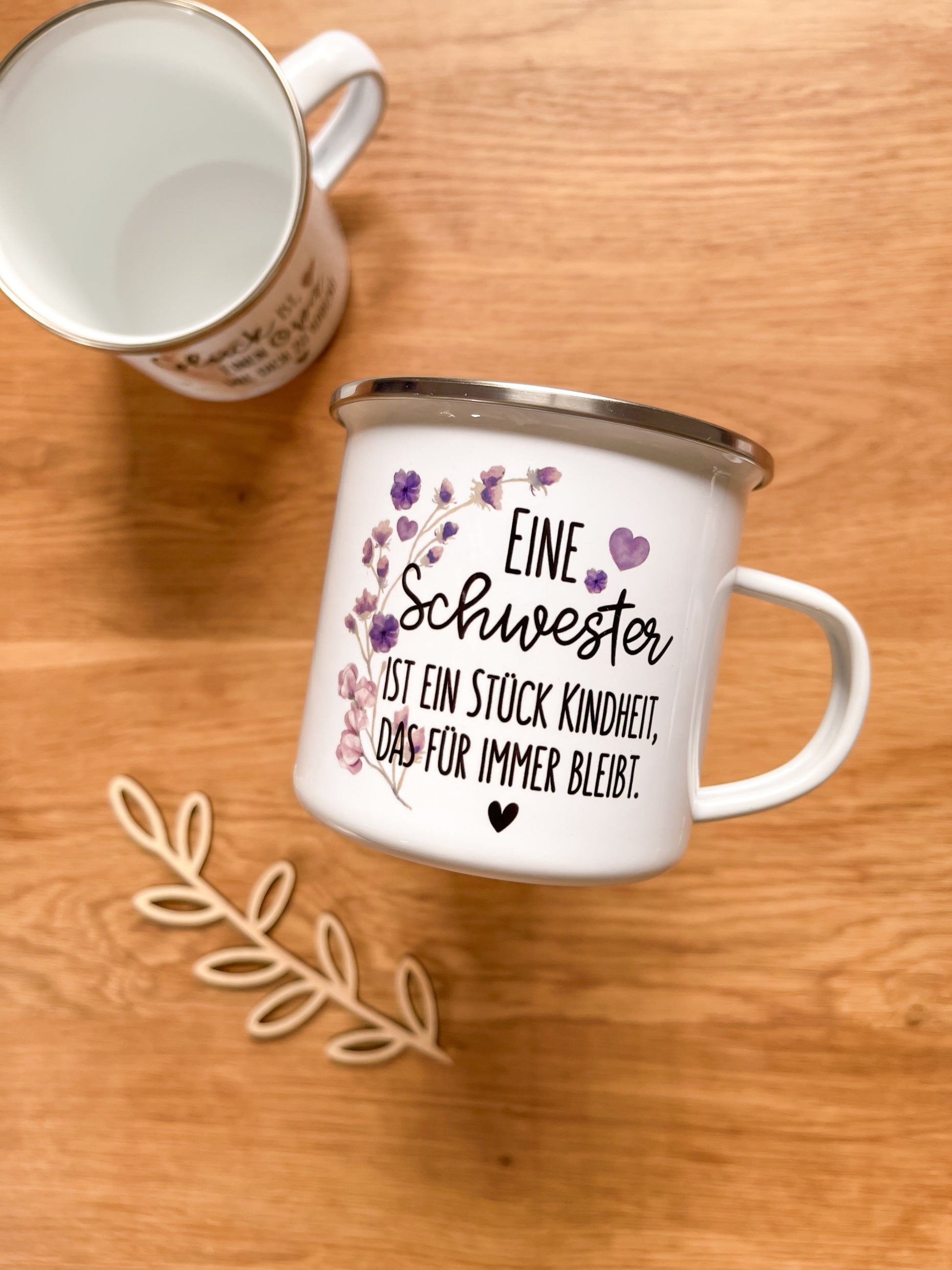 Personalisierte Emaille-Tasse mit bezauberndem Designs. Schenke deinen Liebsten eine einzigartige Emaille Tasse mit einer netten Botschaft und dem Namen personalisiert - eine schöne Idee um den Beschenkten bei jedem Kaffe, Tee, Kakao ein Lächeln ins Gesicht zu zaubern.