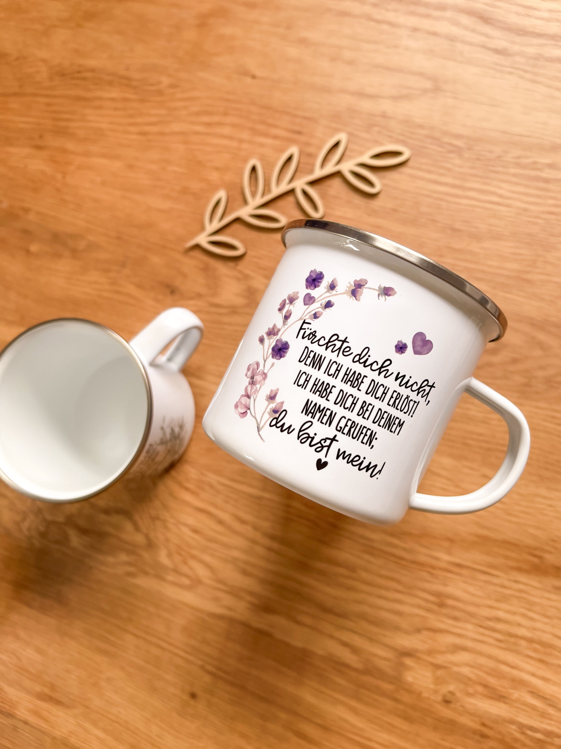 Christliche Emaille-Tasse mit bezauberndem Design und ermutigenden Bibelversen. Schenke deinen Liebsten eine einzigartige Emaille Tasse mit einer netten Botschaft und dem Namen personalisiert - eine schöne Idee um den Beschenkten bei jedem Kaffe, Tee, Kakao ein Lächeln ins Gesicht zu zaubern.