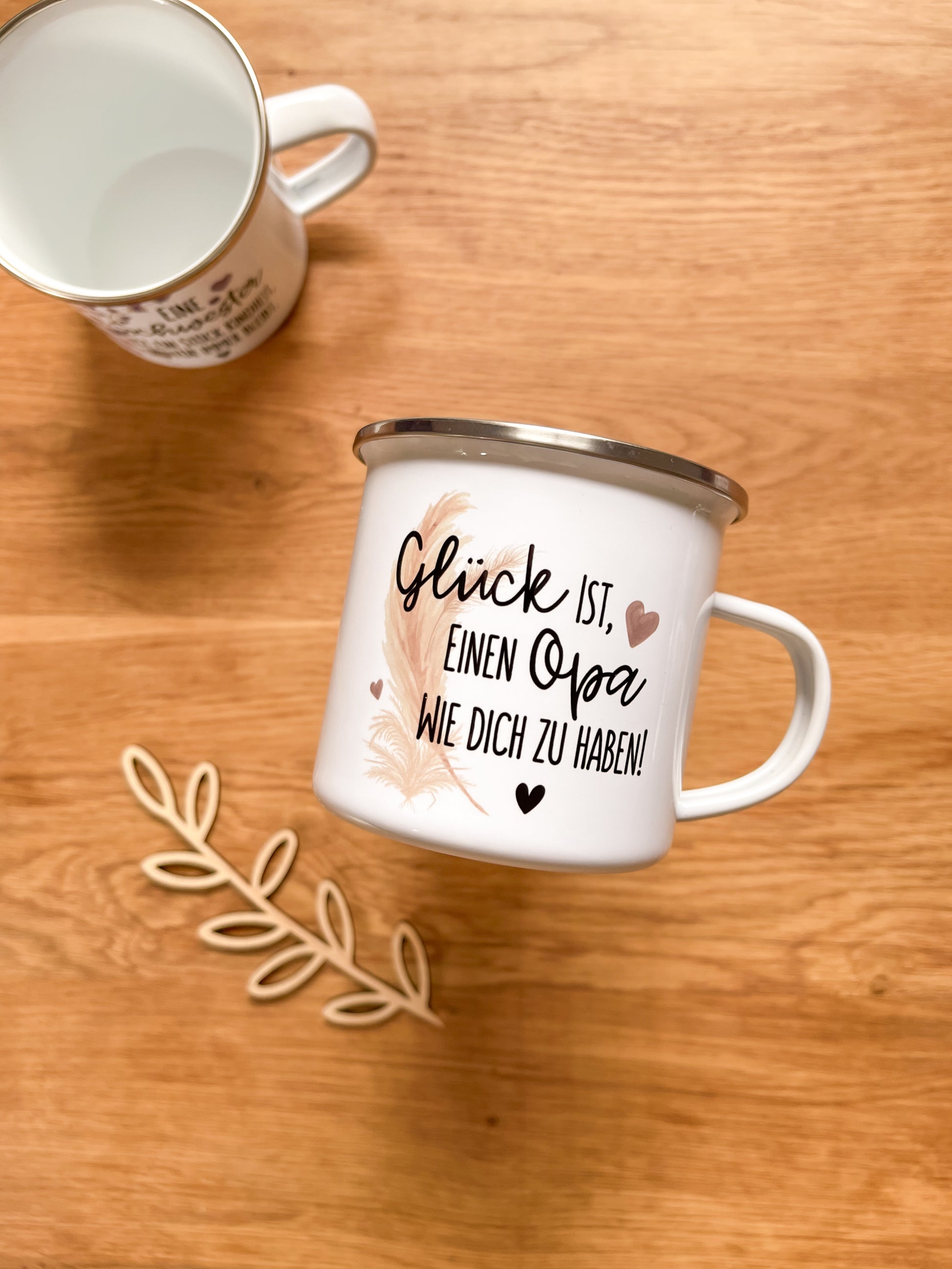 Personalisierte Emaille-Tasse mit bezauberndem Designs. Schenke deinen Liebsten eine einzigartige Emaille Tasse mit einer netten Botschaft und dem Namen personalisiert - eine schöne Idee um den Beschenkten bei jedem Kaffe, Tee, Kakao ein Lächeln ins Gesicht zu zaubern.