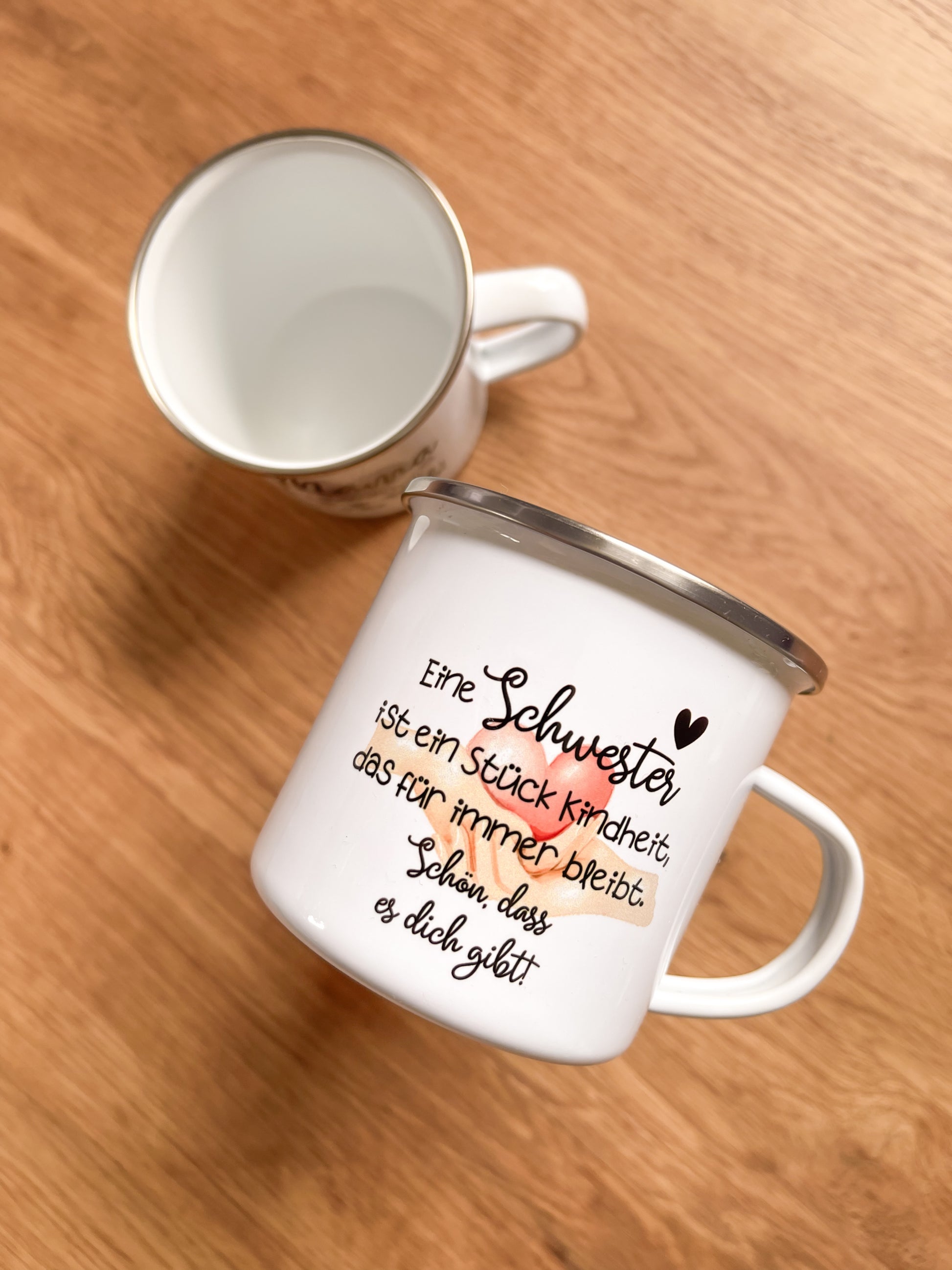 Personalisierte Emaille-Tasse mit bezauberndem Designs. Schenke deinen Liebsten eine einzigartige Emaille Tasse mit einer netten Botschaft und dem Namen personalisiert - eine schöne Idee um den Beschenkten bei jedem Kaffe, Tee, Kakao ein Lächeln ins Gesicht zu zaubern.