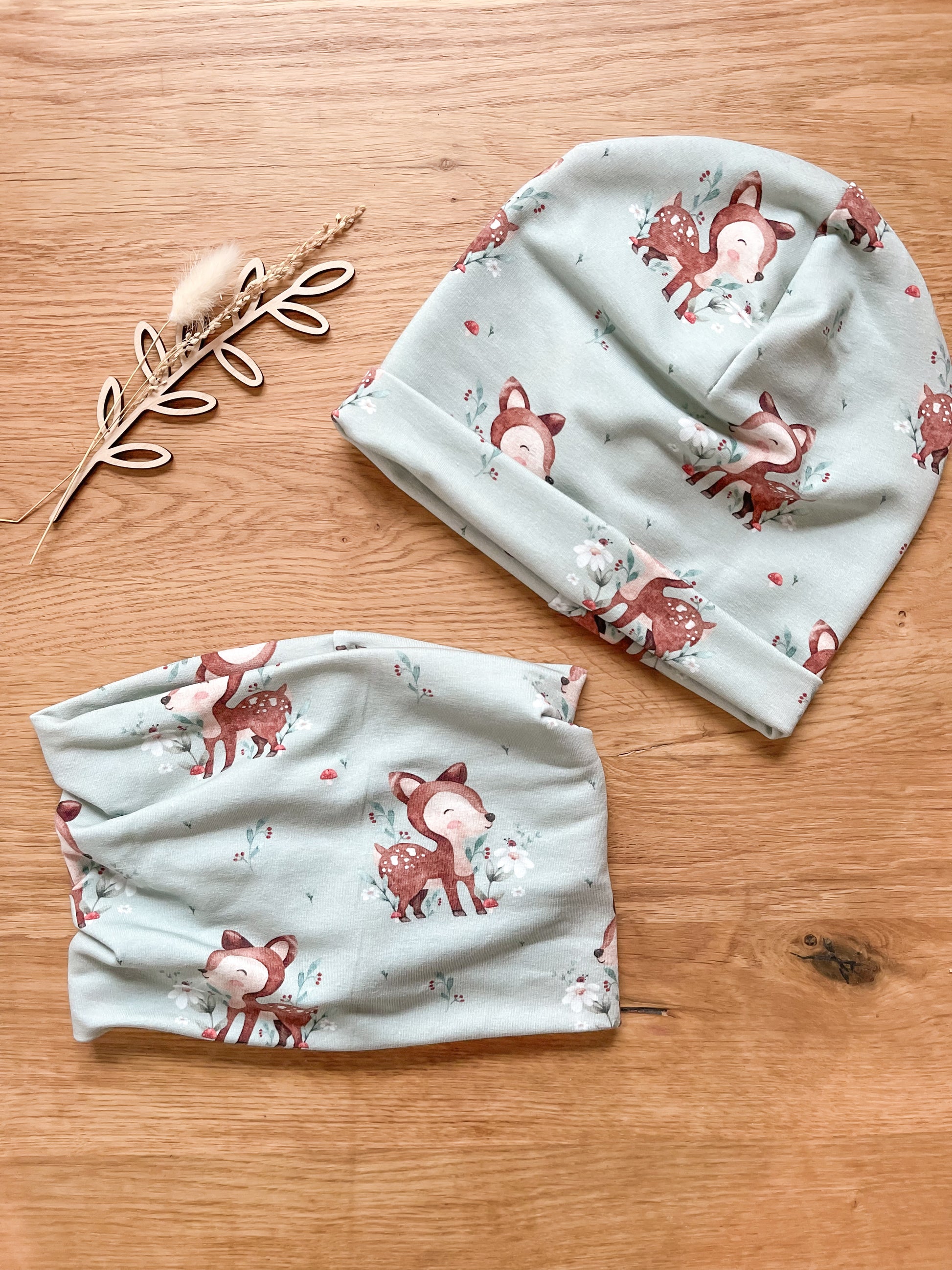 Die möglichen Stoffe findest du hier. Den Kopfumfang bitte im Personalisierungsfenster angeben.